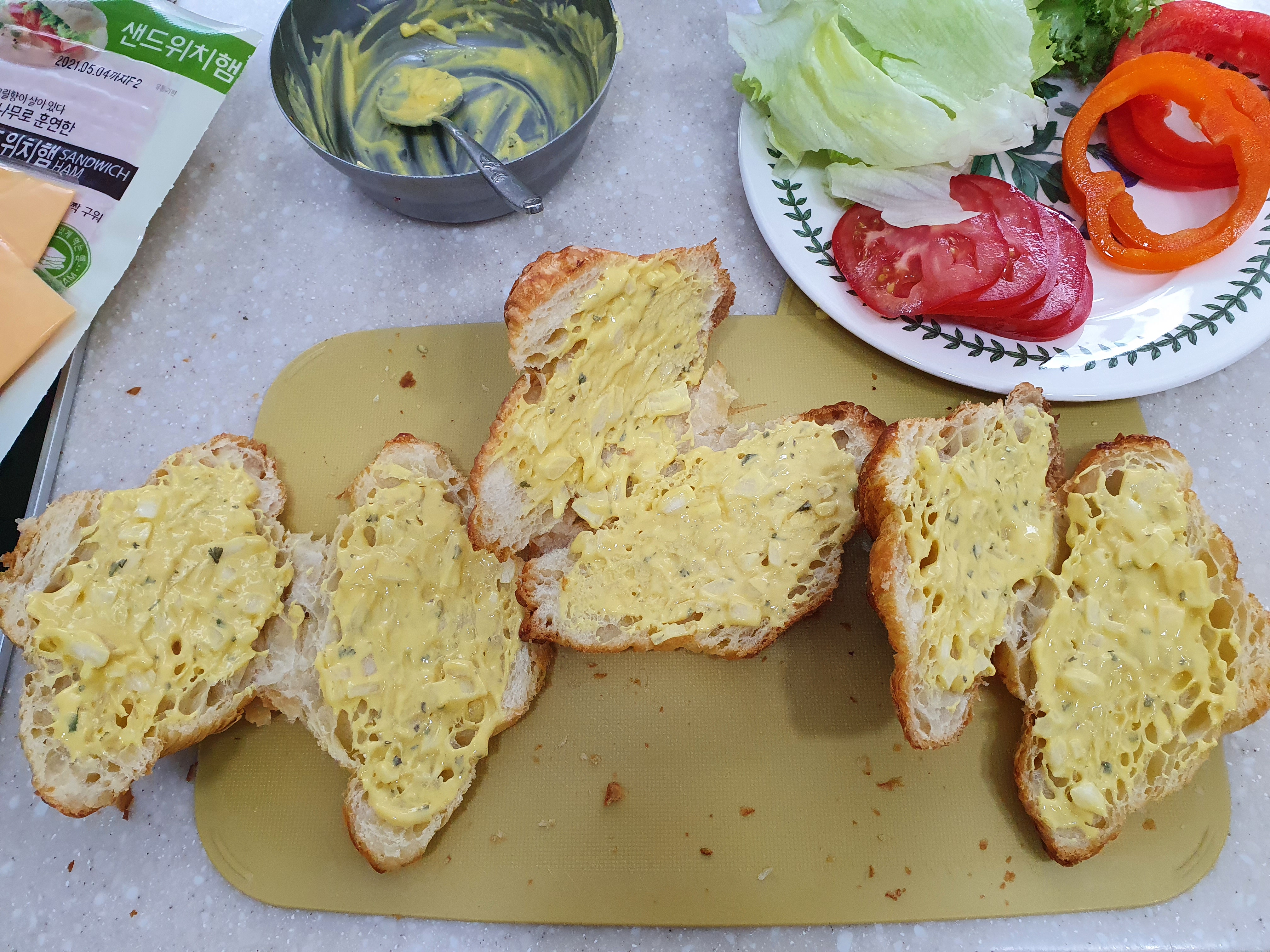 치아바타 샌드위치 만들 때 처럼 달걀이나 감자를 삶아 다진 다음 넣어도 맛있어요.
