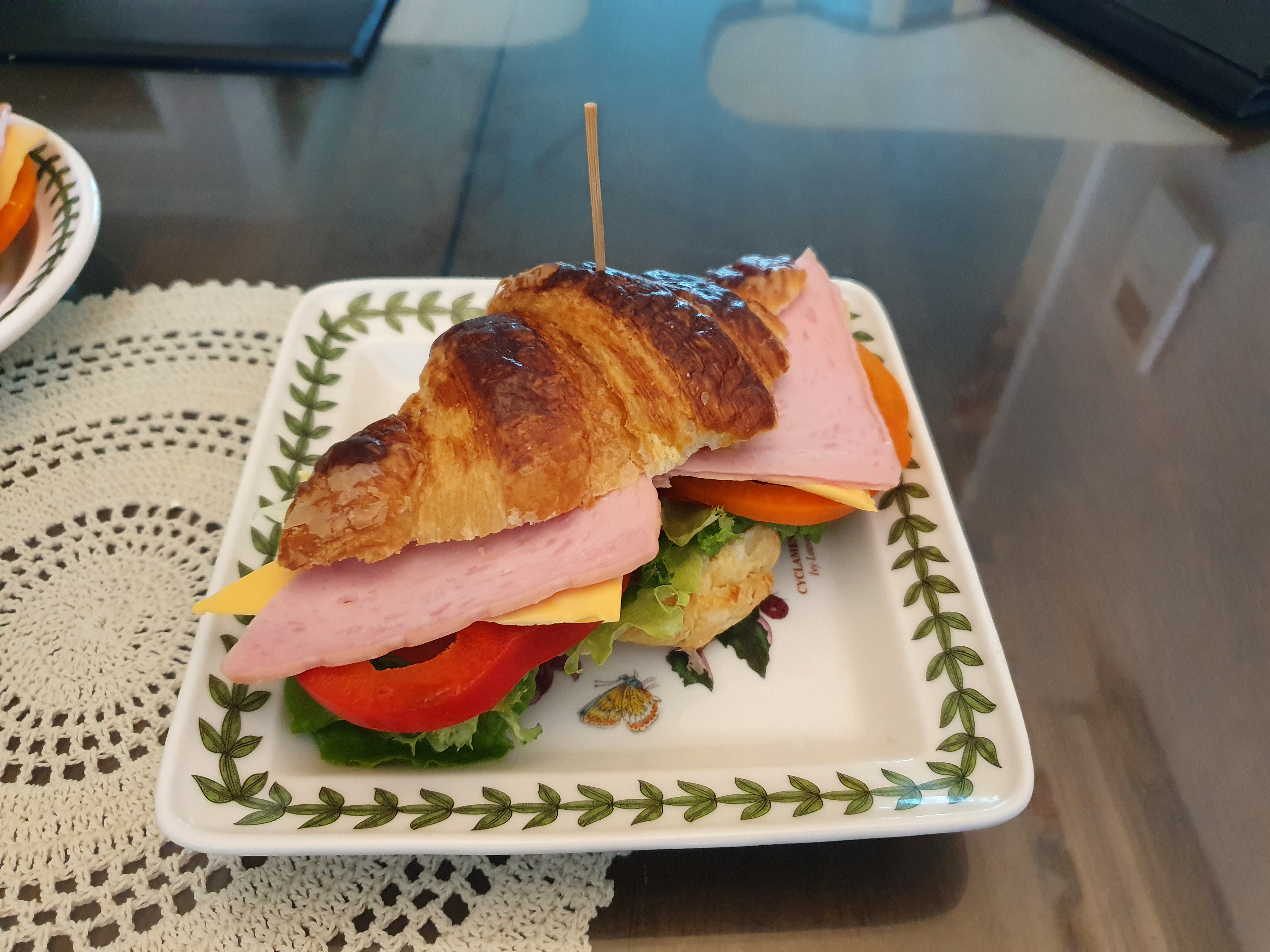 우유나 두유와 함께 먹으면 한끼로 든든한 크로와상 샌드위치입니다.