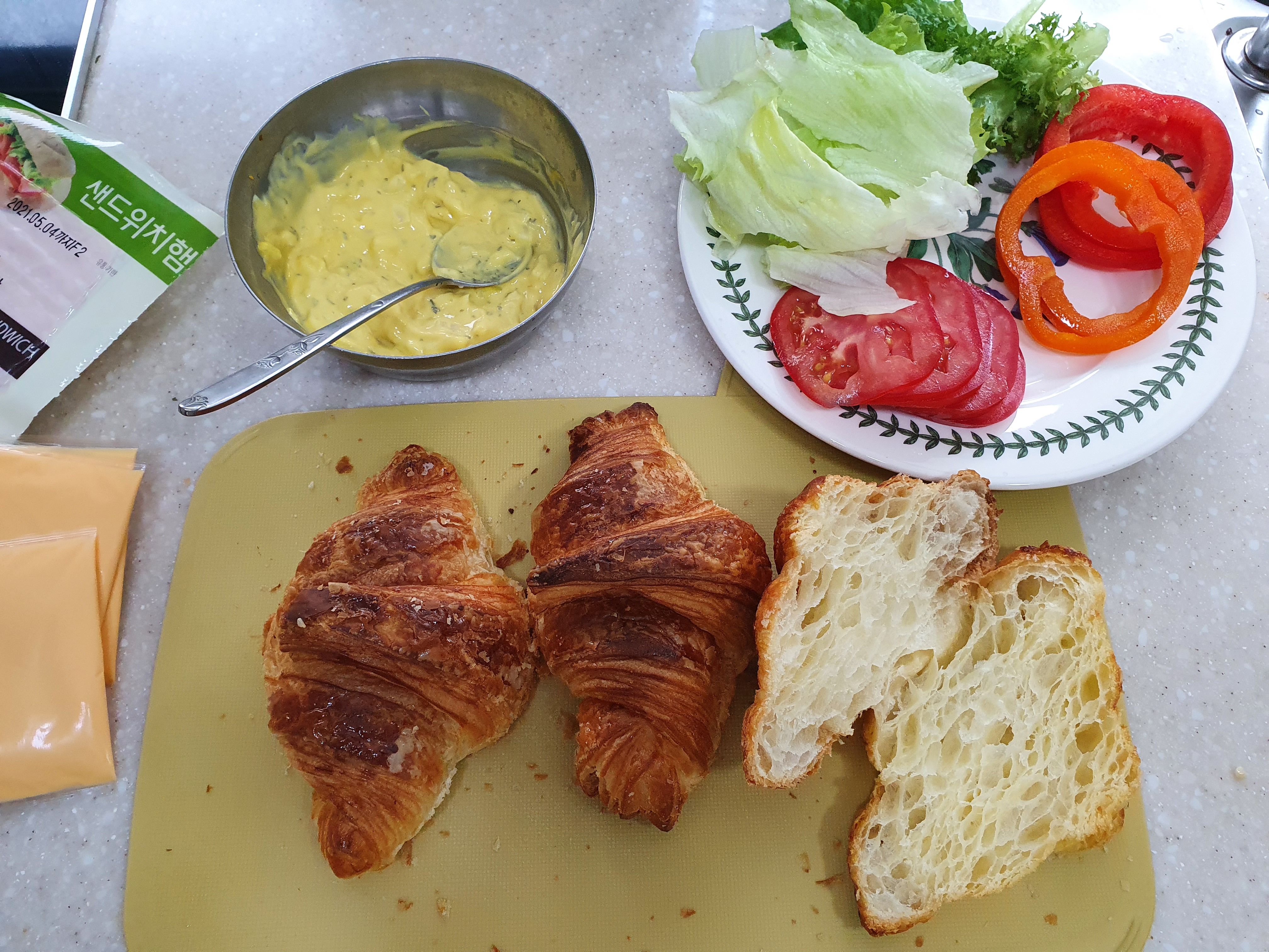성심당 크로와상으로 샌드위치를 만들었어요.