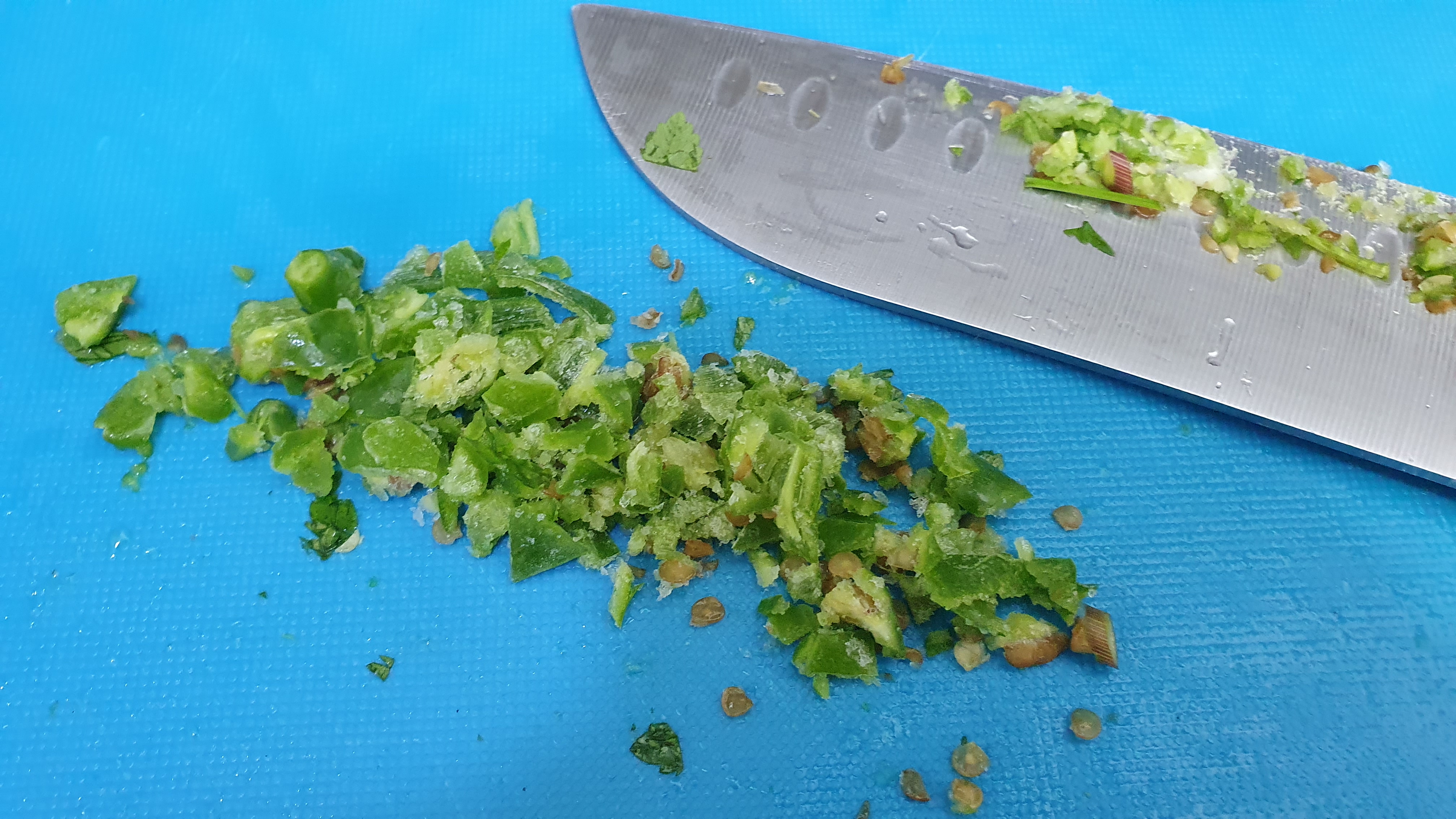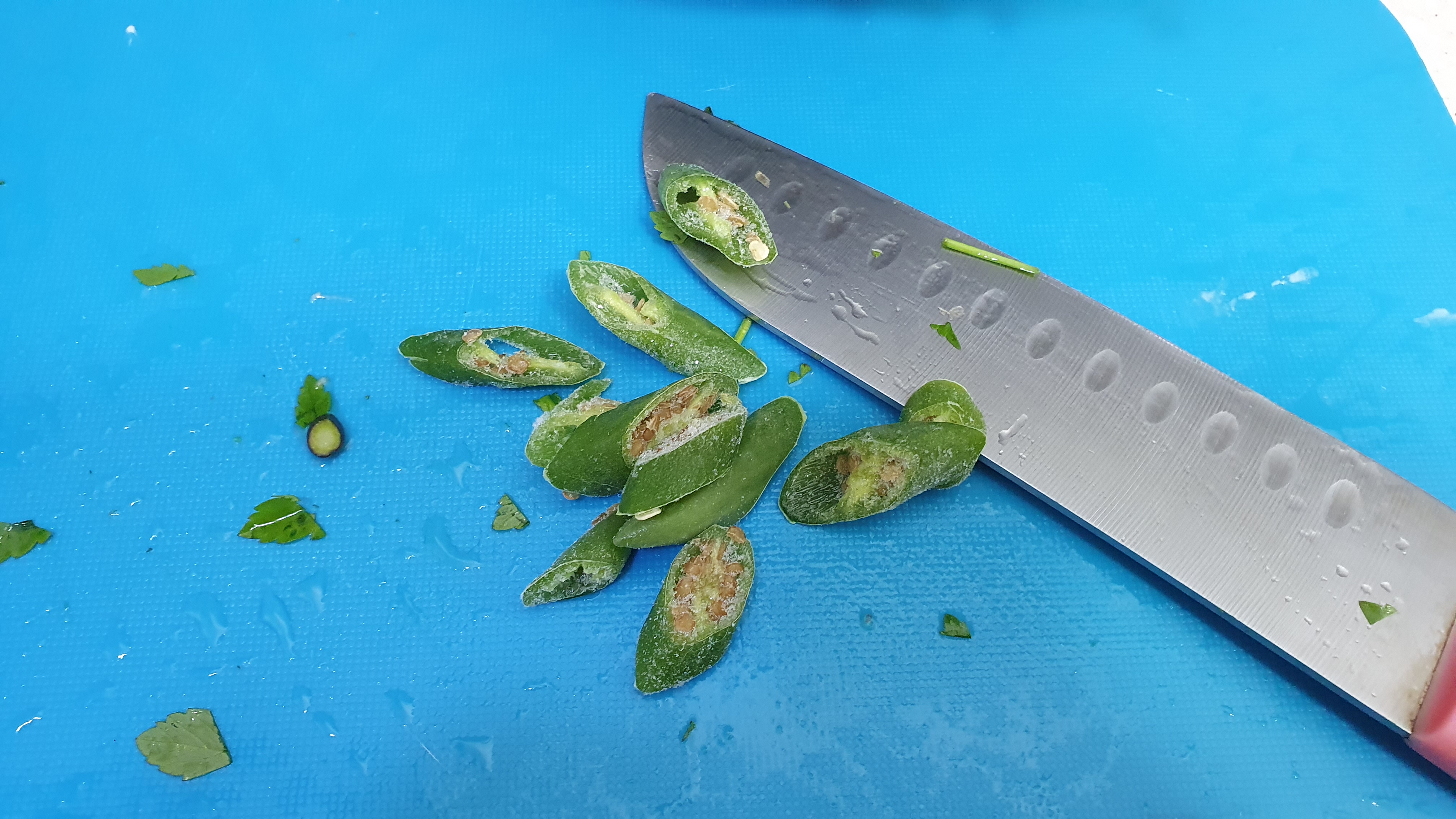 살짝 매콤한 맛을 위해 얼려놨던 청양고추를 잘게 썰어서 넣어줬습니다.