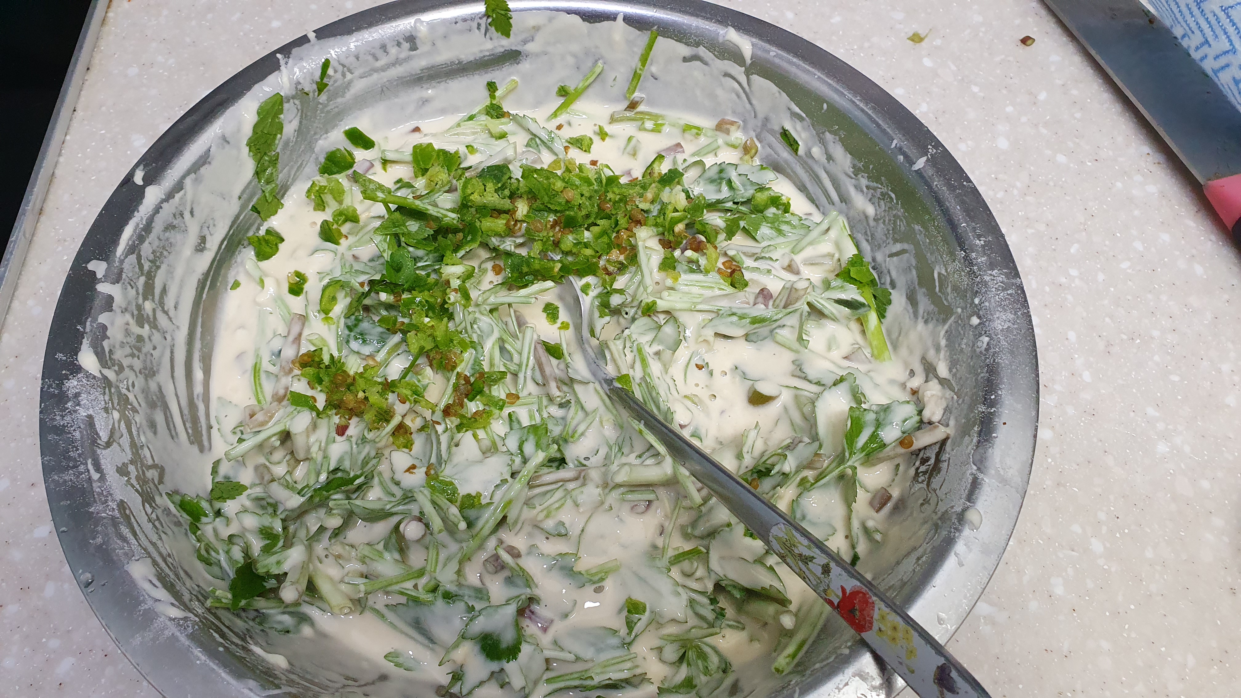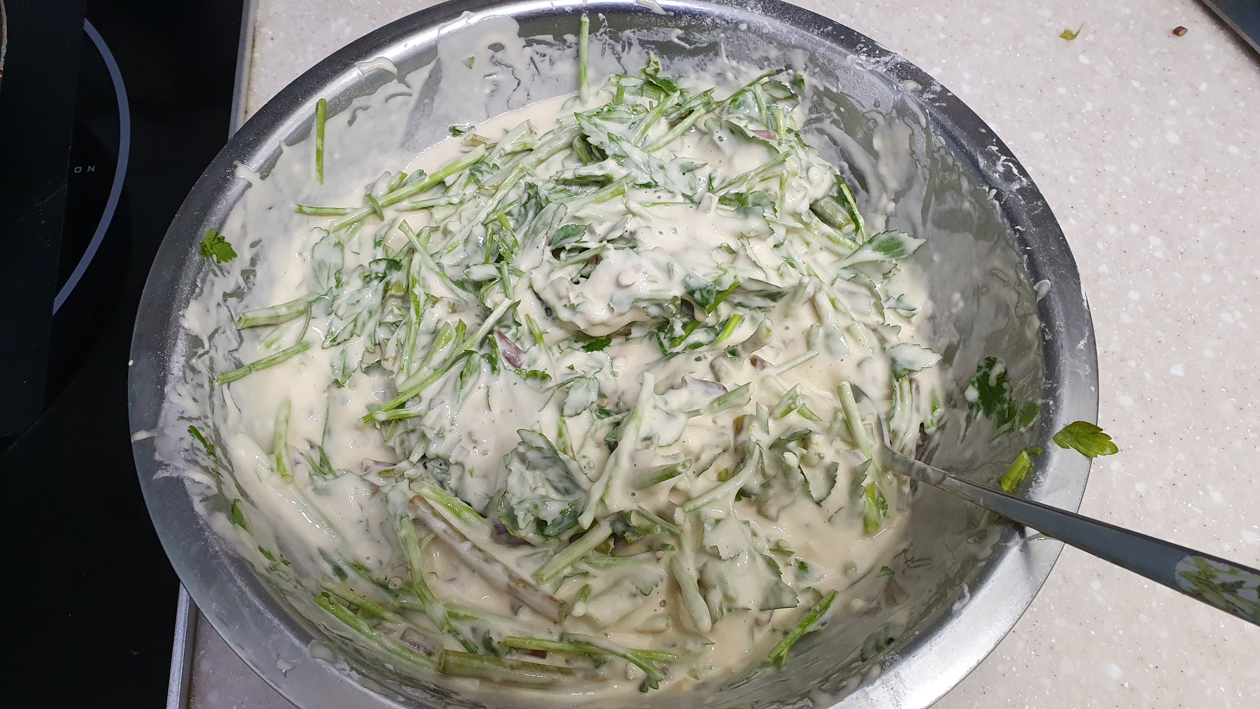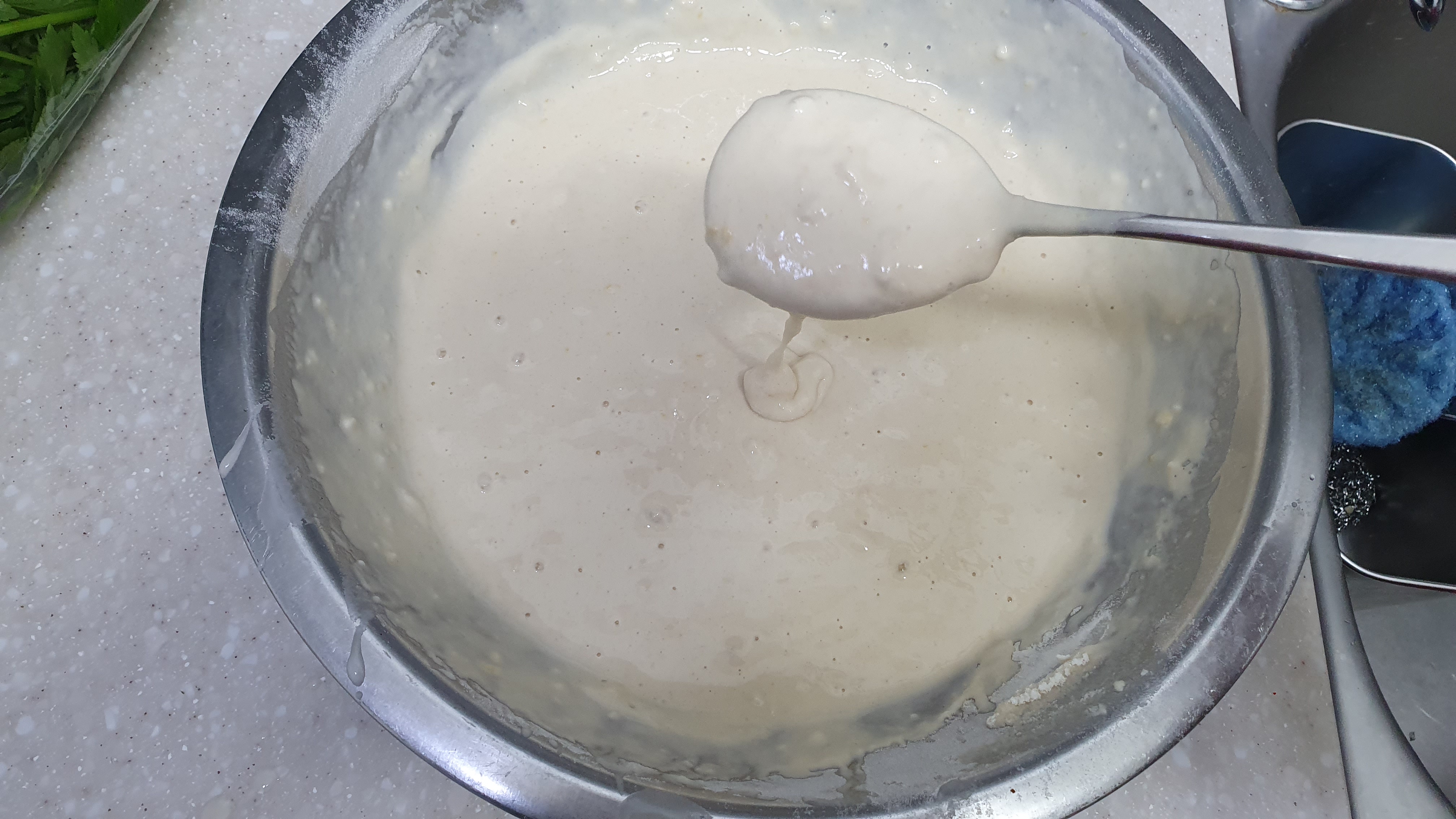 적당히 걸죽한 반죽이 만들어졌습니다.