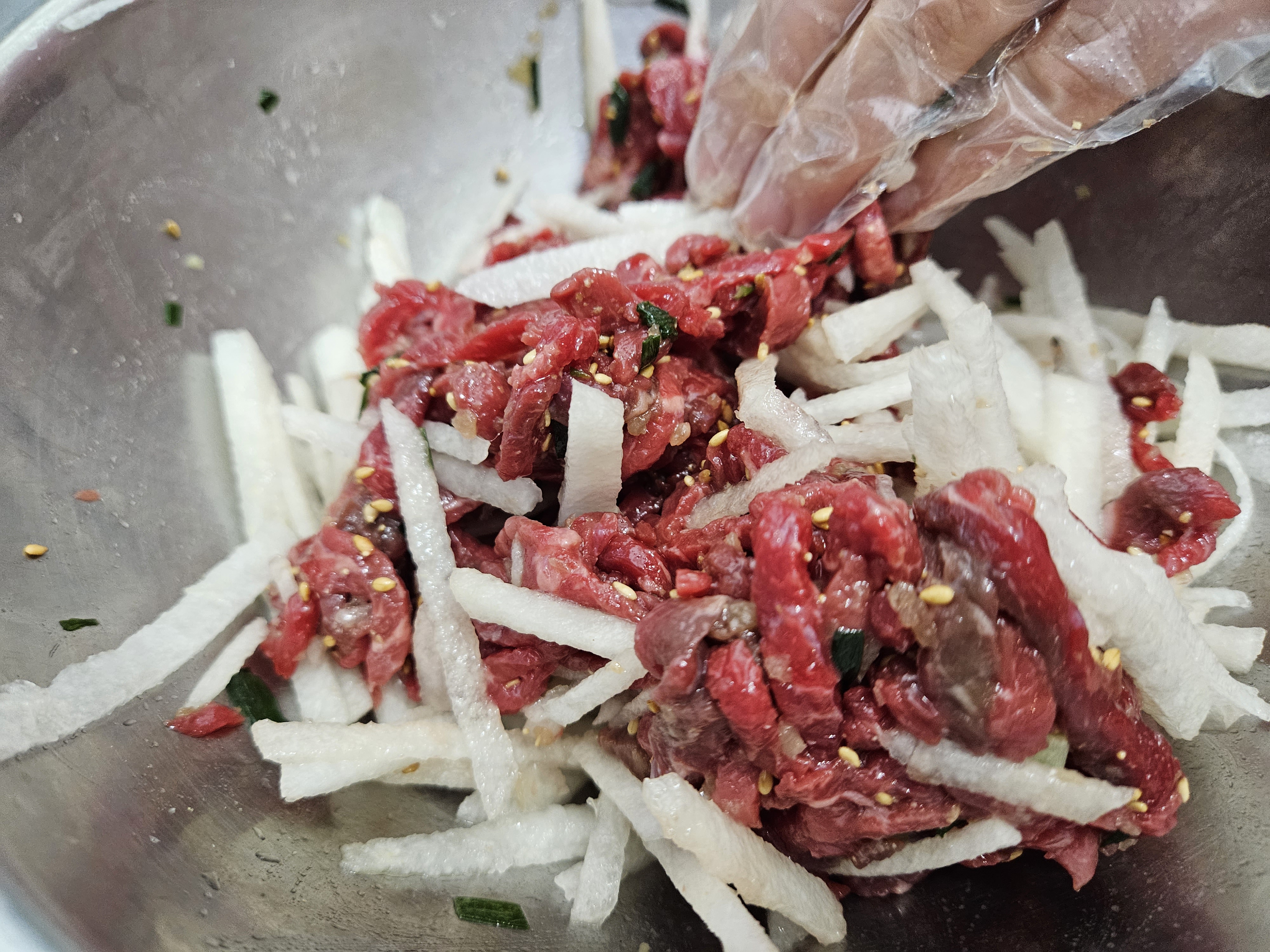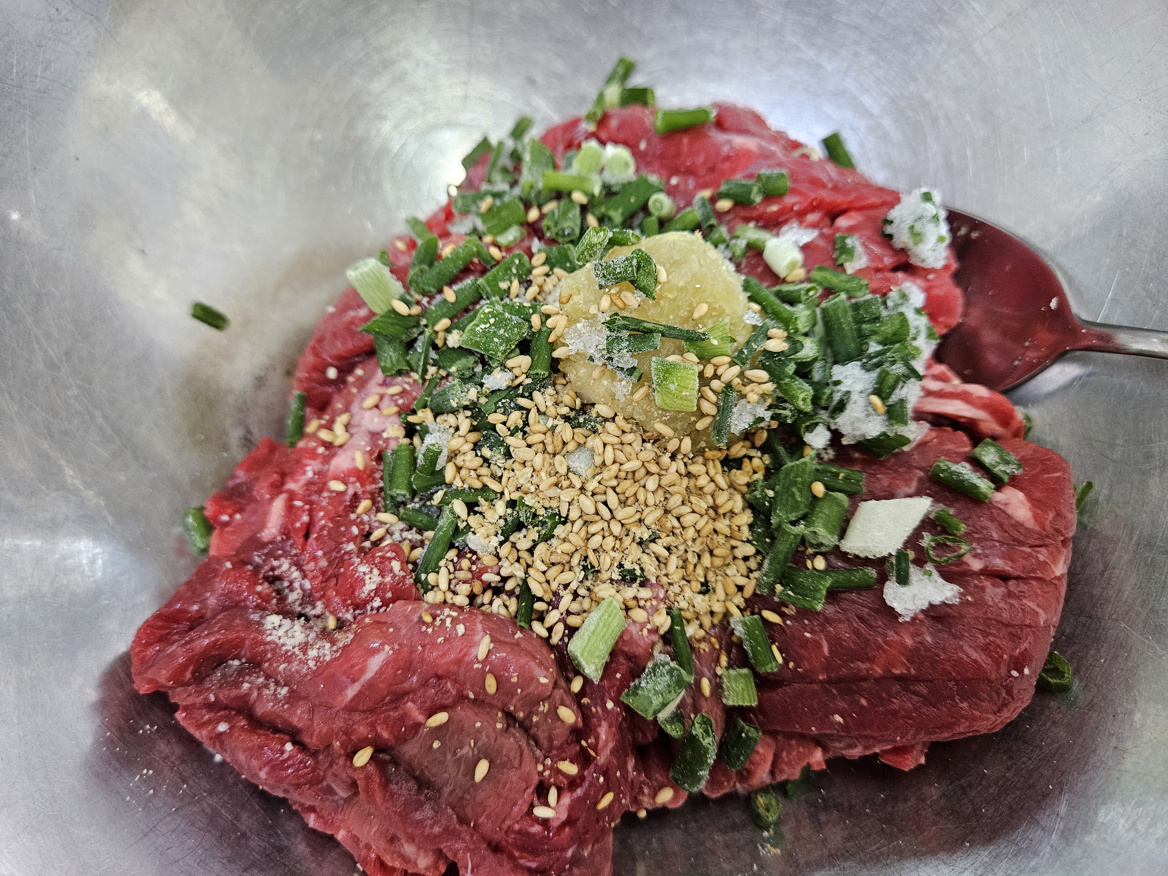 내가 육회를 안먹기 때문에 한번도 안해줬는데 애들은 왜이렇게 육회를 좋아하는지...