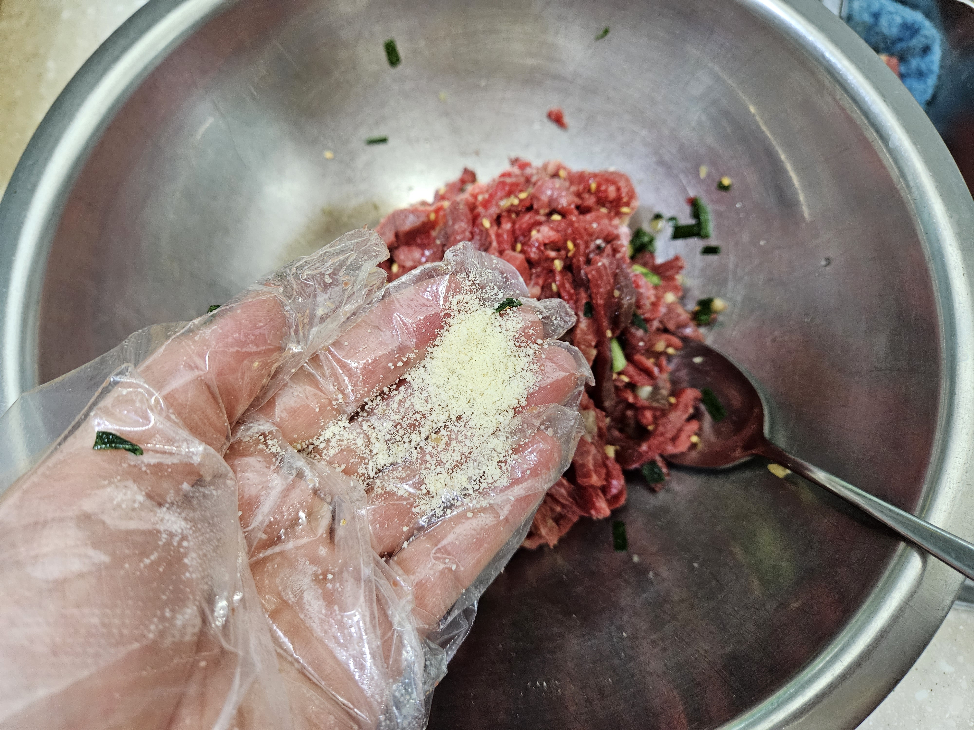 마늘도 한스푼 넣어줬어요.