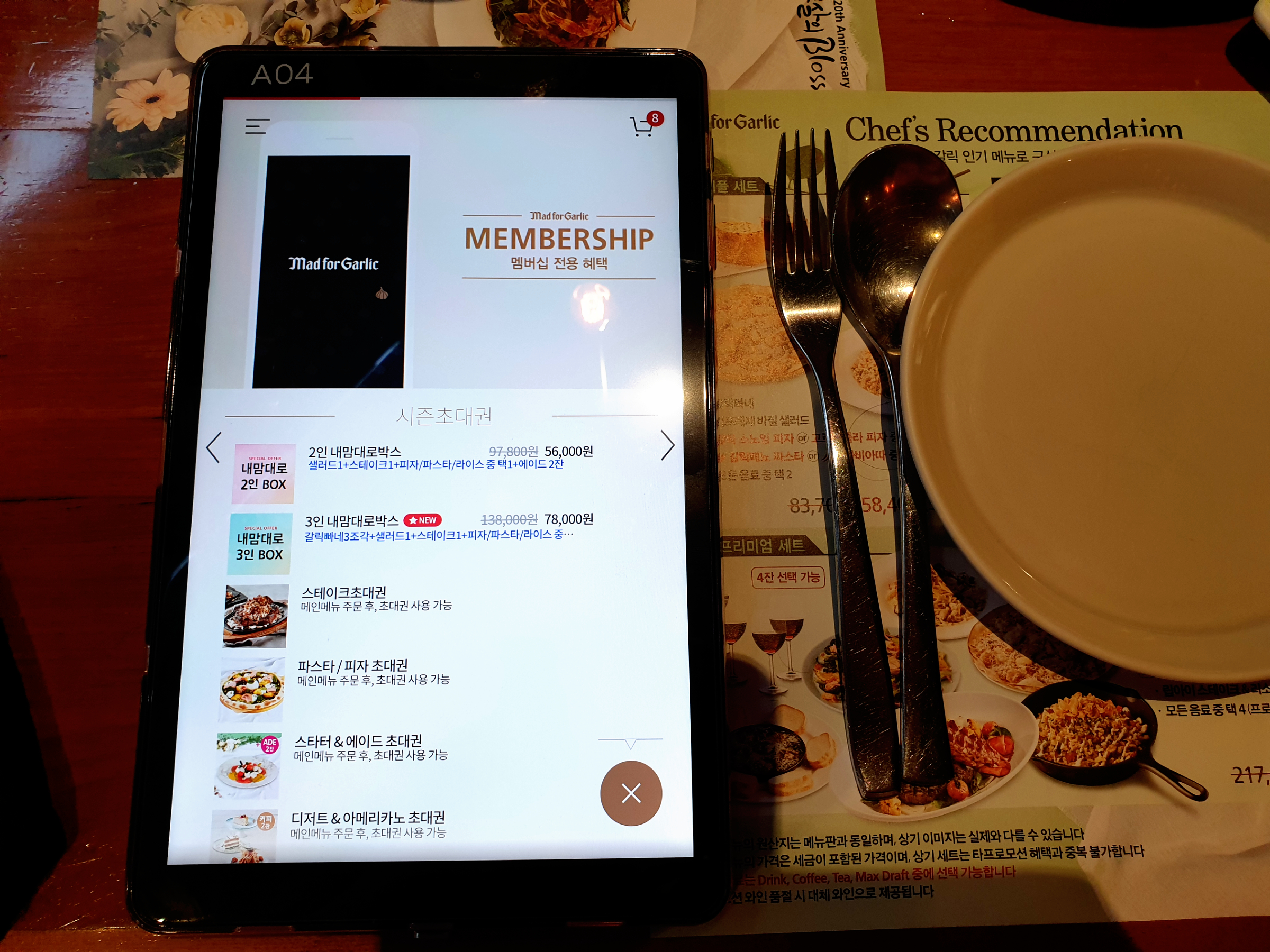 직원이 태블릿을 갖다 주면 멤버십 확인하고 메뉴를 넘겨가며 고르면 된다.